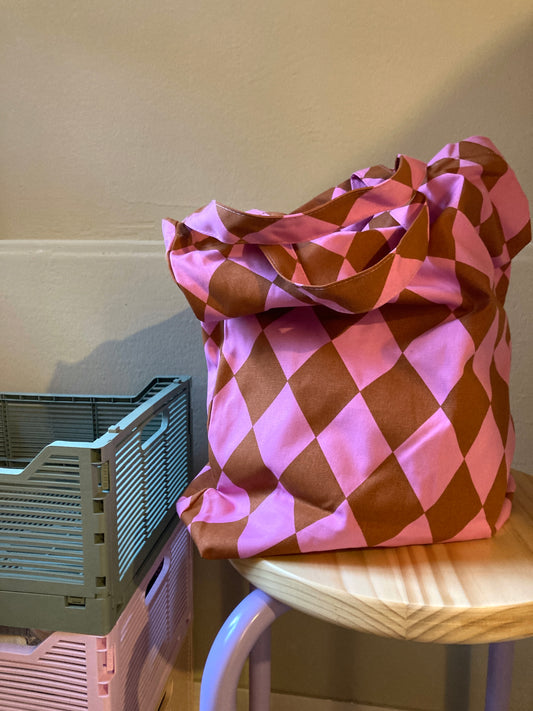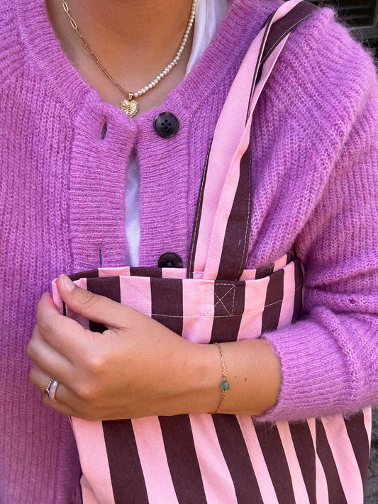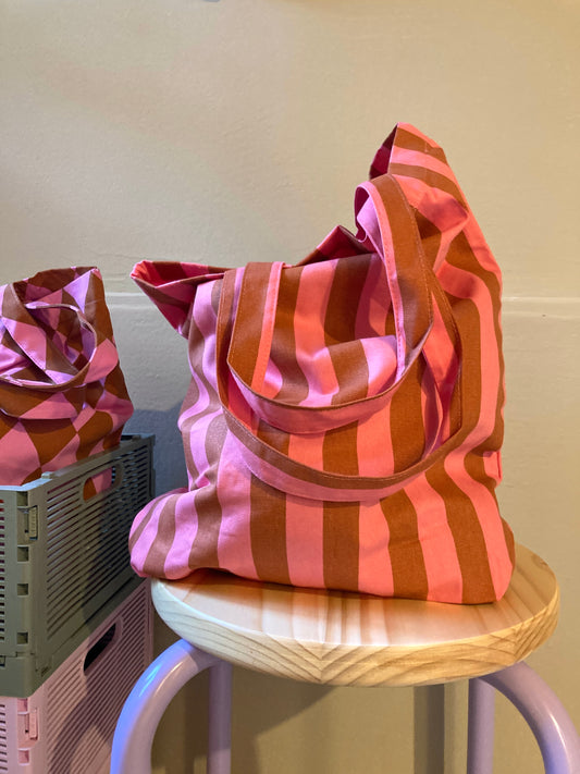 Katoenen tas - Stripes Chocolate - Bubblegum