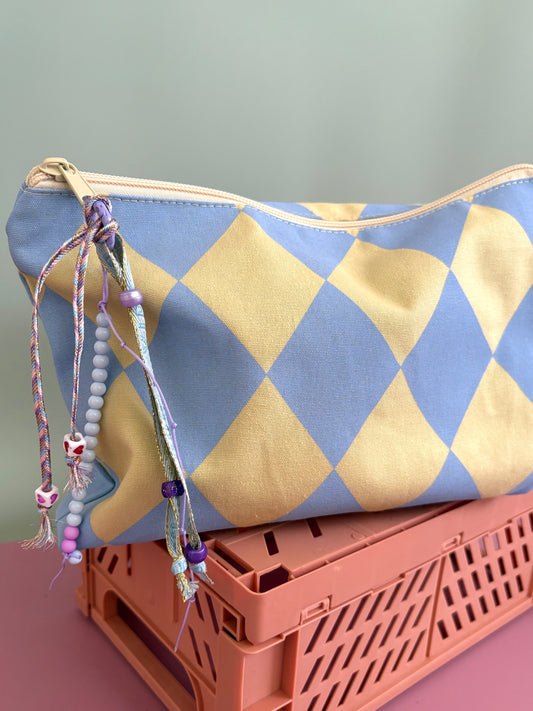 Etui/toilettasje + vrolijke sleutelhanger - Blauw/licht geel