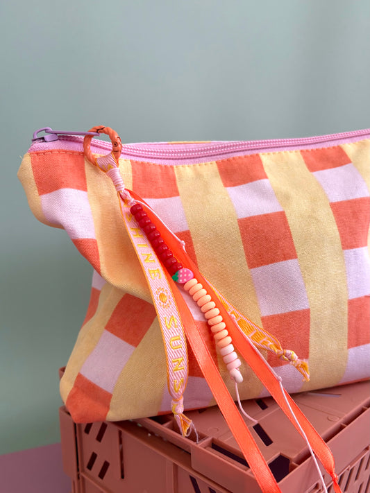 Etui/toilettasje + vrolijke sleutelhanger - Geblokt oranje/geel