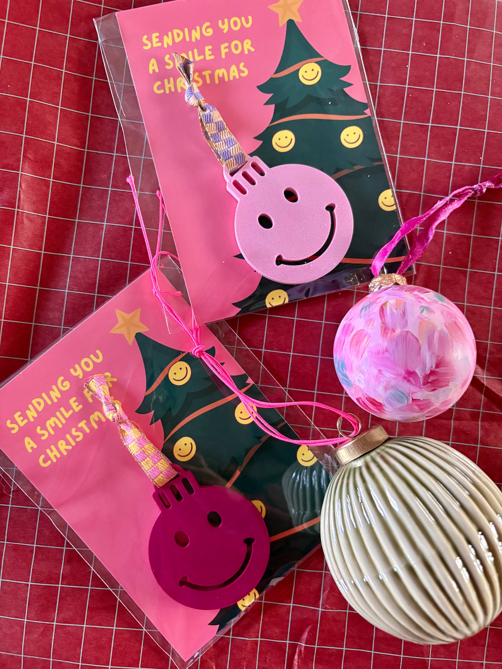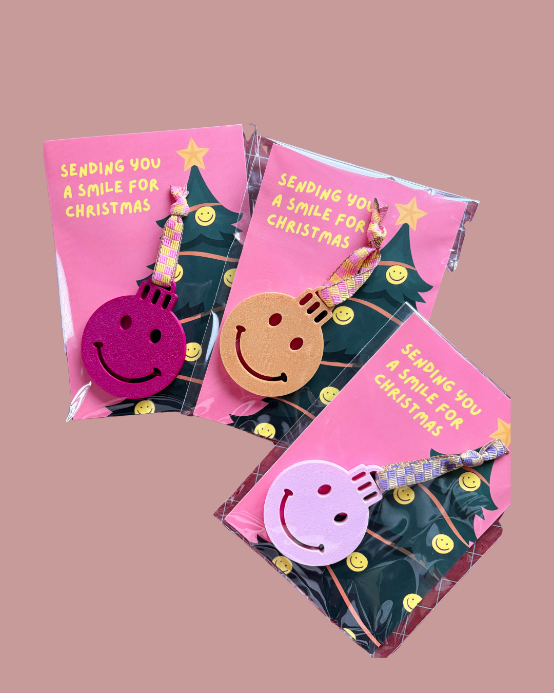 Leuke kaart voor de kerst met een smiley kersthanger. Wil je net even dat extraatje versturen? Dan is deze hanger een topper! Achter op de kaart is ruimte om iets op te schrijven.
